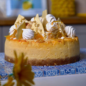 Base: plain digestive biscuit base with lemon zest, mixed peel and white chocolate chips