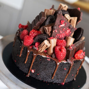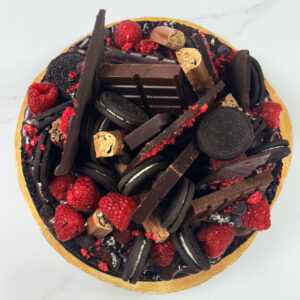 Toppings: dark chocolate ganache, galaxy ripples, fresh raspberries, dark chocolate slab, cadburys flake, dark chocolate chips, cookies and cream biscuits, crushed cookies and cream biscuits, crushed freeze dried raspberries